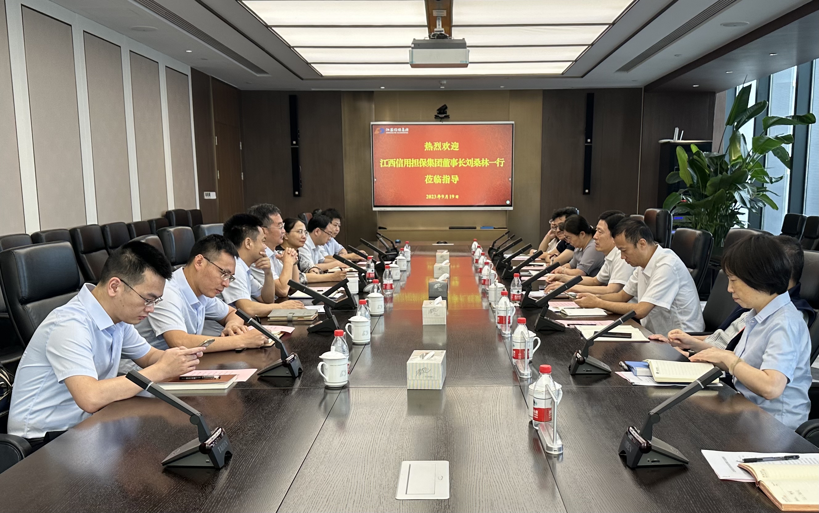 9月19日,集團(tuán)黨委副書記、總裁王松奇與江西省信用融資擔(dān)保集團(tuán)股份有限公司黨委書記、董事長(zhǎng)劉桑林在信保大樓3303會(huì)議室交流座談。集團(tuán)副總裁趙東坡、總裁助理華靜,江西省信用擔(dān)保集團(tuán)黨委委員、財(cái)務(wù)總監(jiān)甘敏,黨委委員、副總經(jīng)理錢建勇參加。
