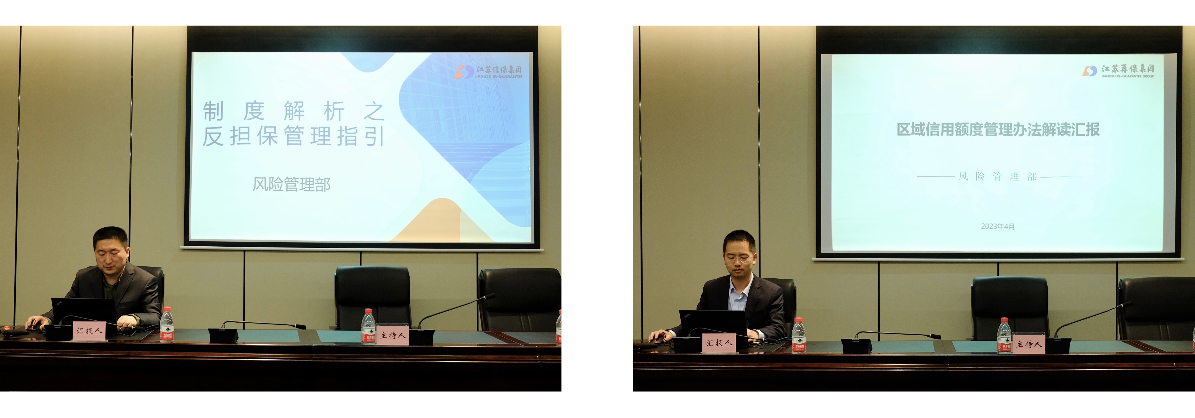 會上,風險管理部有關同志詳細解讀了反擔保管理指引,從修訂依據、重要定義、重點條款等方面闡釋該制度,重點介紹反擔保資產覆蓋率的計算模型——“評級與規模質量并重的分類管理”模型。介紹了區域信用額度管理辦法,從制度起草背景與目的、主要特點、制度框架及要點、實施安排等方面進行解釋說明。