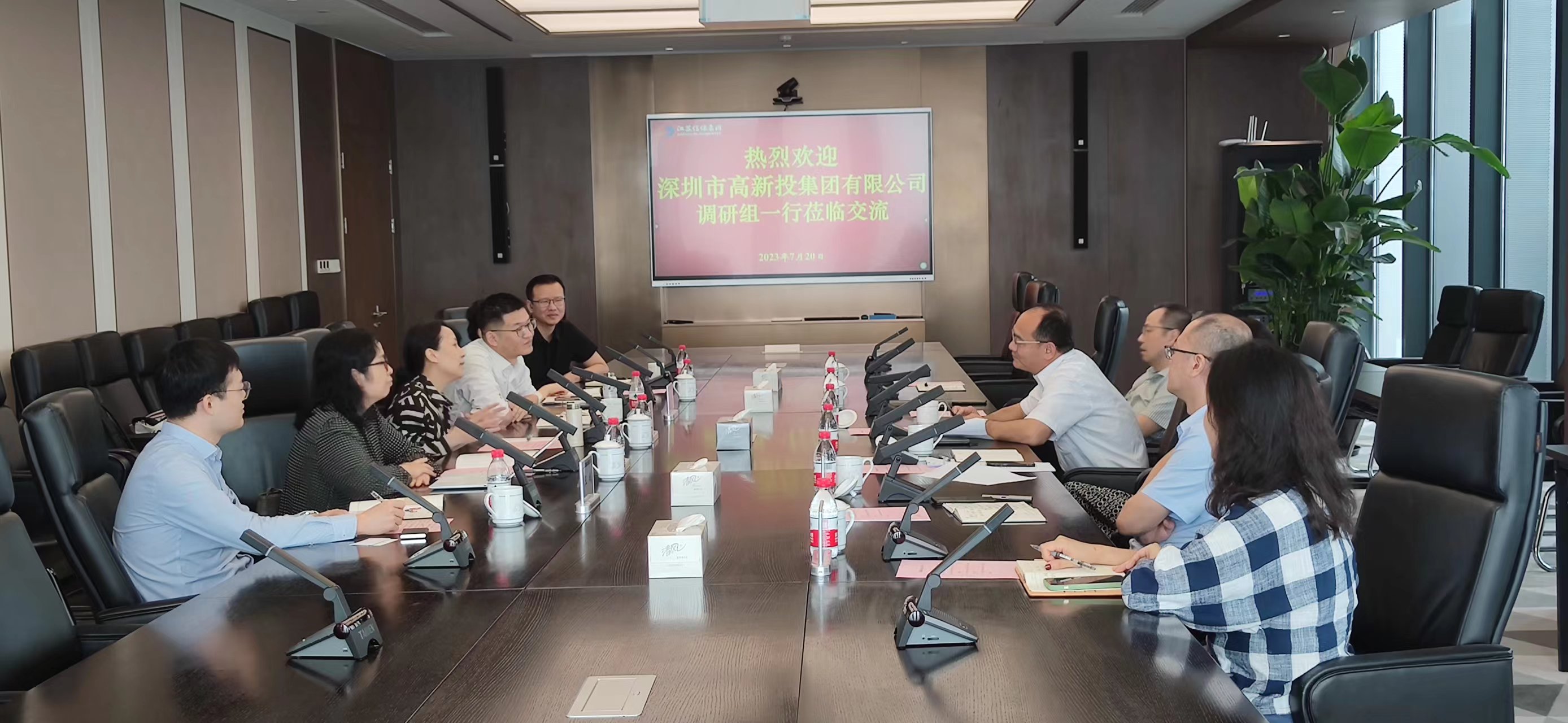 7月20日上午,集團黨委委員、副總裁殷益東與到訪的深圳高新投集團首席風險官施曉梅一行交流座談。