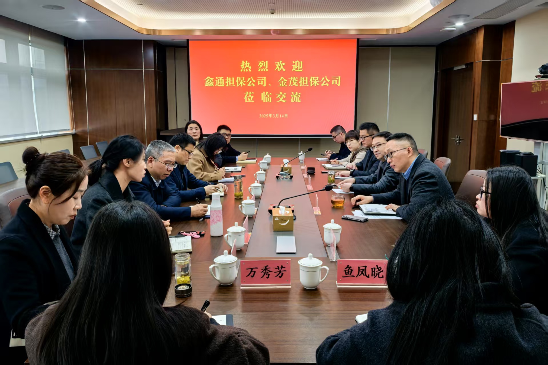日前,泰州市鑫通融資擔(dān)保有限公司、江蘇金茂融資擔(dān)保有限公司一行到訪常州高新?lián)9荆_展座談交流。