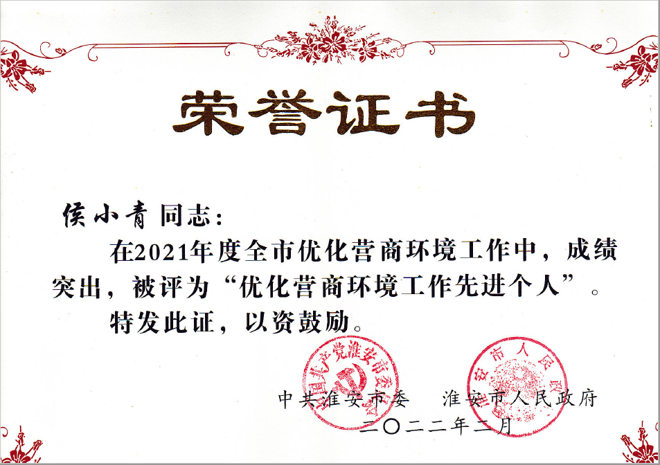 2月10日,淮安市重特大項(xiàng)目攻堅(jiān)暨優(yōu)化營(yíng)商環(huán)境大會(huì)召開,淮安分公司被市委市政府授予“2021年度優(yōu)化營(yíng)商環(huán)境先進(jìn)集體”、第三次被授予“優(yōu)化營(yíng)商環(huán)境流動(dòng)紅旗”、是全市為數(shù)不多獲此殊榮的金融機(jī)構(gòu)。分公司侯小青同志獲得“2021年度優(yōu)化營(yíng)商環(huán)境工作先進(jìn)個(gè)人”榮譽(yù)稱號(hào)。