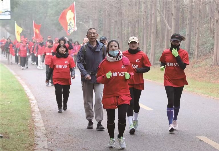 本次活動由南通日報社主辦,來自全市各機關、街道、企業、金融機構、社會群團組織等近兩千名徒步愛好者,組成近50個方陣相聚在美麗的軍山綠野,用最飽滿的熱情、最有力的腳步,在通城的版圖上闊步奔跑,迎接新一年的到來。