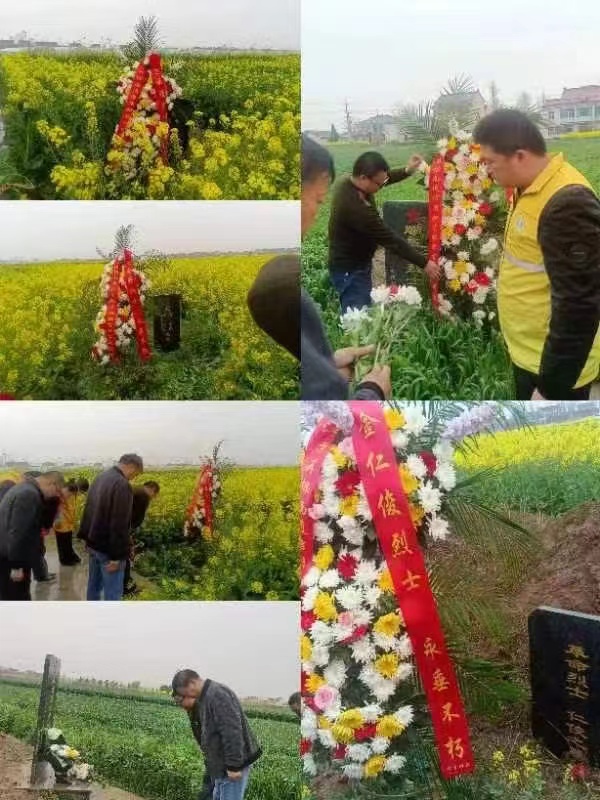 本次祭掃的四名烈士金仁俊、顧玉剛、包余青、包云青,均為黃建村人。他們為信仰奮斗,在為人民幸福中犧牲,他們的生命雖已逝去,但他們可貴、崇高的精神,永遠留存在大家心中。為了表達對烈士的緬懷之情,南通地區黨支部于2023年對通往四名烈士墓碑約7.6公里主干道進行修繕。時隔一年,南通地區黨支部全體黨員再次懷著崇敬之情,通過默哀、敬獻花圈的方式向四名烈士表達哀思。