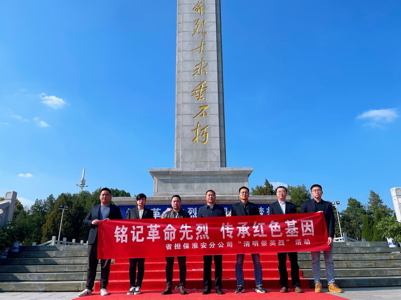 在革命烈士紀念碑前,省擔保淮安分公司全體人員聆聽英烈事跡,肅立默哀、敬獻鮮花。大家邁著莊嚴的步伐,向人民英雄紀念碑敬獻鮮花,深刻緬懷為爭取民族獨立、人民解放的英烈們,表達對革命先烈的無限敬仰和哀思。