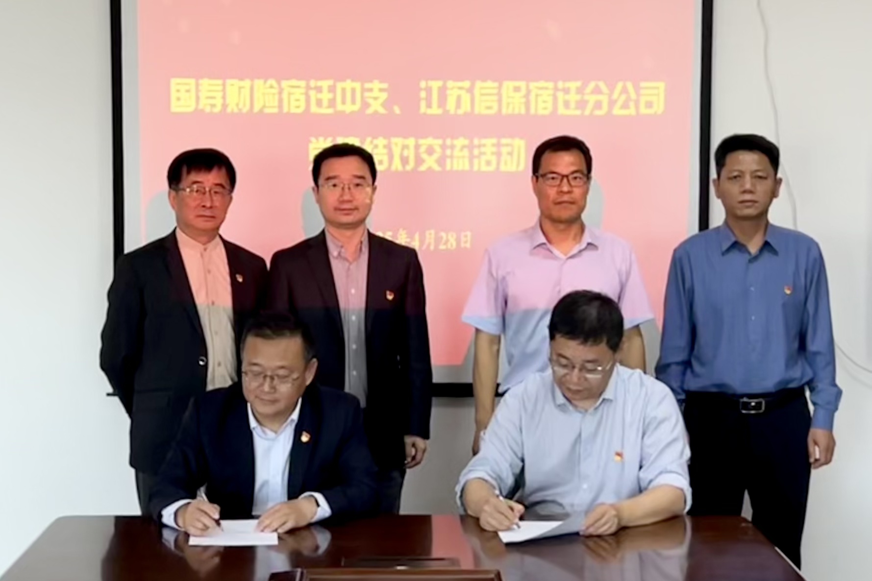 4月28日,宿遷分公司與國壽財險宿遷中支開展黨建結對交流活動,雙方黨支部負責人及黨員代表參與座談。