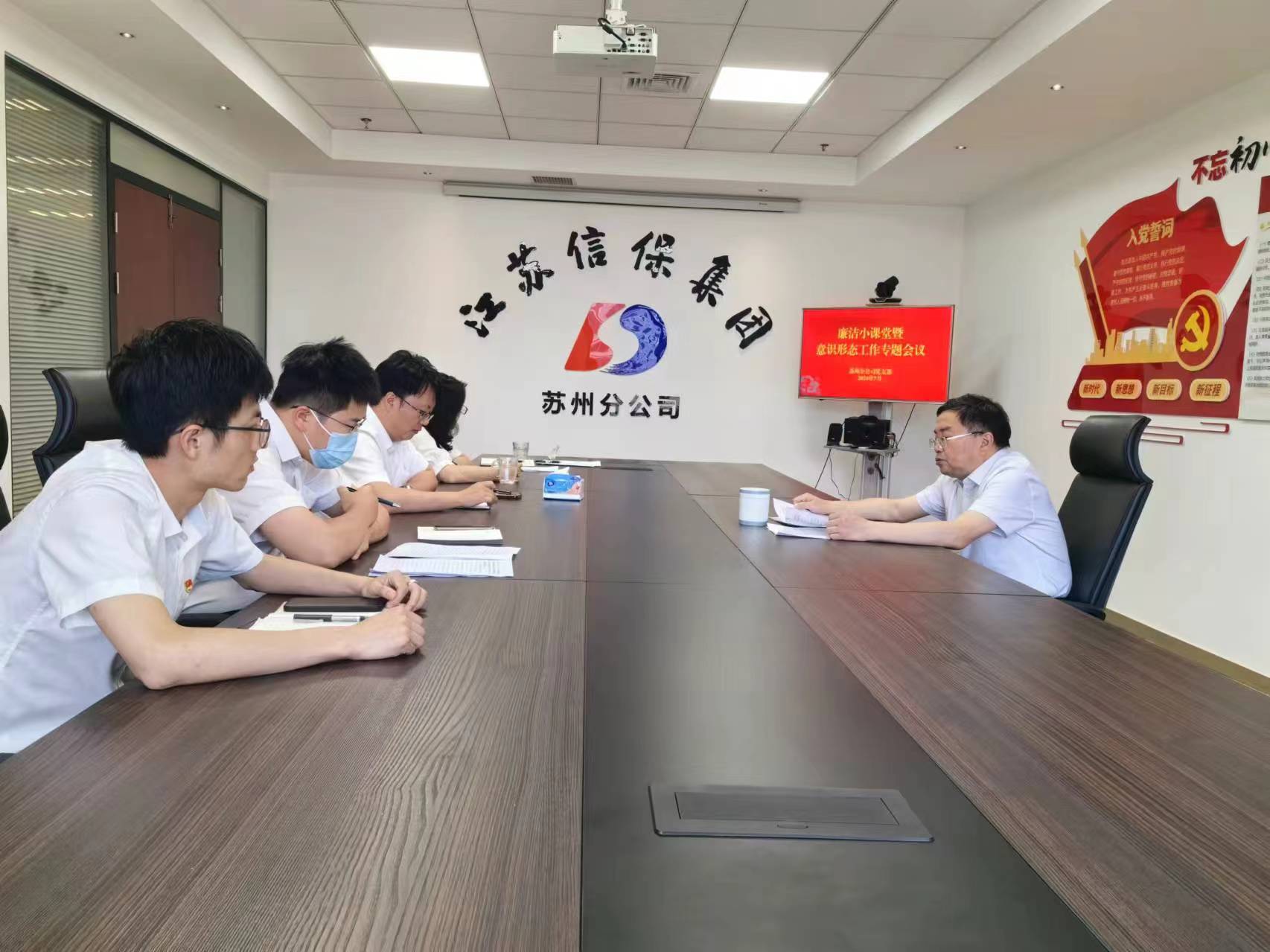 7月5日,蘇州分公司黨支部舉辦“廉潔小課堂”暨意識形態(tài)工作專題會議,全體黨員參會。
