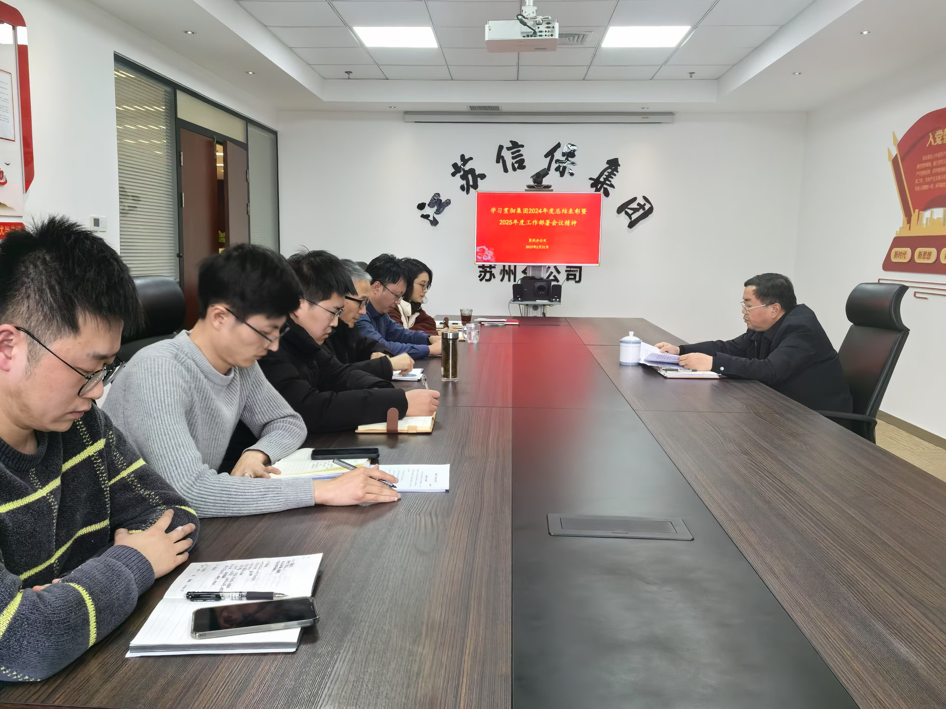 2月21日,蘇州分公司召開(kāi)專題會(huì)議,傳達(dá)學(xué)習(xí)集團(tuán)2024年度總結(jié)表彰暨2025年度工作部署會(huì)、2025年度全面從嚴(yán)治黨工作會(huì)議精神,公司全體員工參會(huì)。