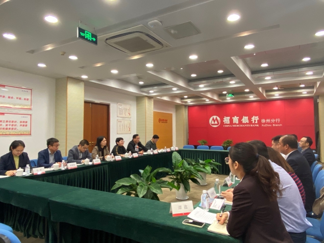 雙方就服務招商銀行總行戰略客戶在徐產業鏈、“園區保”服務徐州地區“專精特新”和“小巨人”企業、“小微貸”推動普惠業務發展等問題進行了深入交流,就權益出資票據增信項目進行了溝通,就小微企業增信集合債進行了探討,并就下一步深化合作達成了共識。