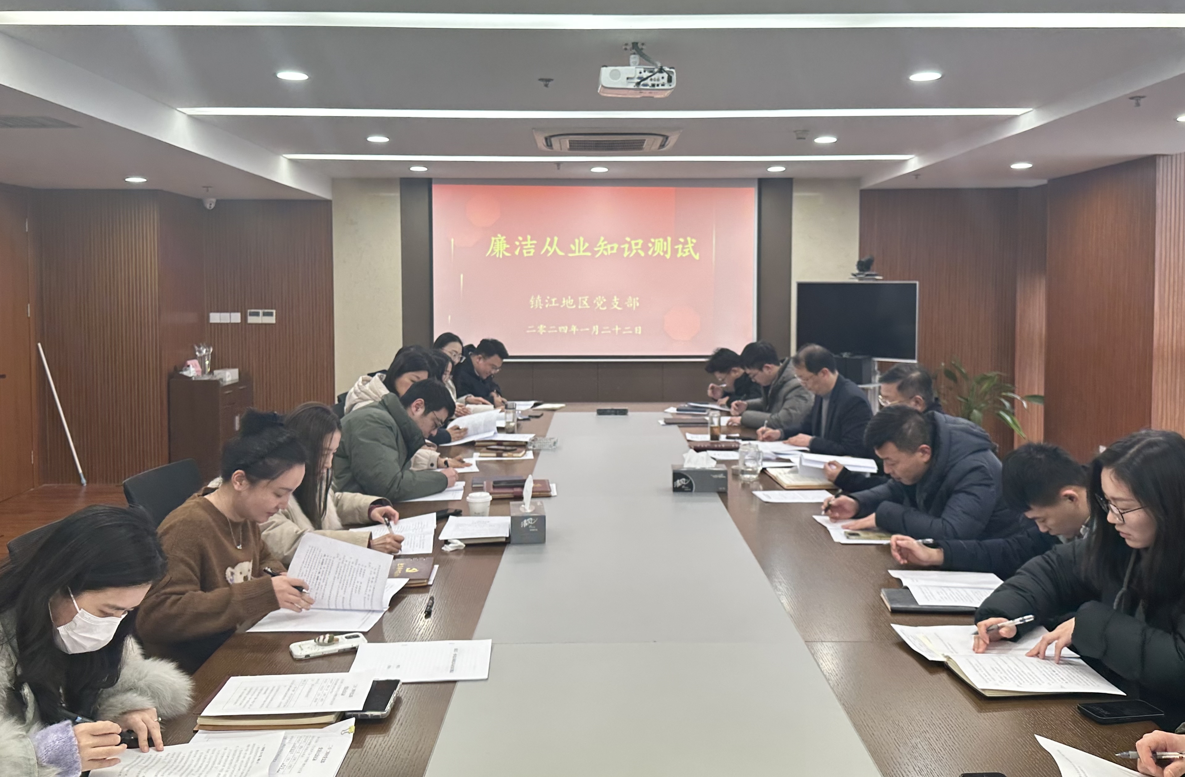 1月22日,鎮江地區黨支部組織開展“廉潔小課堂”活動暨廉潔從業知識測試。