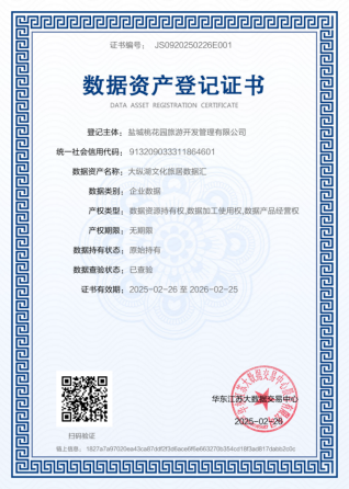 2月28日,在鹽都區數據局指導下,江蘇大縱湖文旅發展集團有限公司旗下鹽城桃花園旅游開發管理有限公司依托桃花園景區文旅數據資源,率先完成“大縱湖文化旅居數據匯”在華東江蘇大數據交易中心的掛牌登記和資產入表。江蘇鎮江信用融資擔保有限公司(簡稱“鎮江擔保公司”)與南京銀行鹽城分行緊密協作,當日即為該項目出具“蘇旅貸”專項擔保函并成功投放500萬元融資,實現鹽城市文旅數據資產“登記入表+質押融資”創新模式的首單突破。