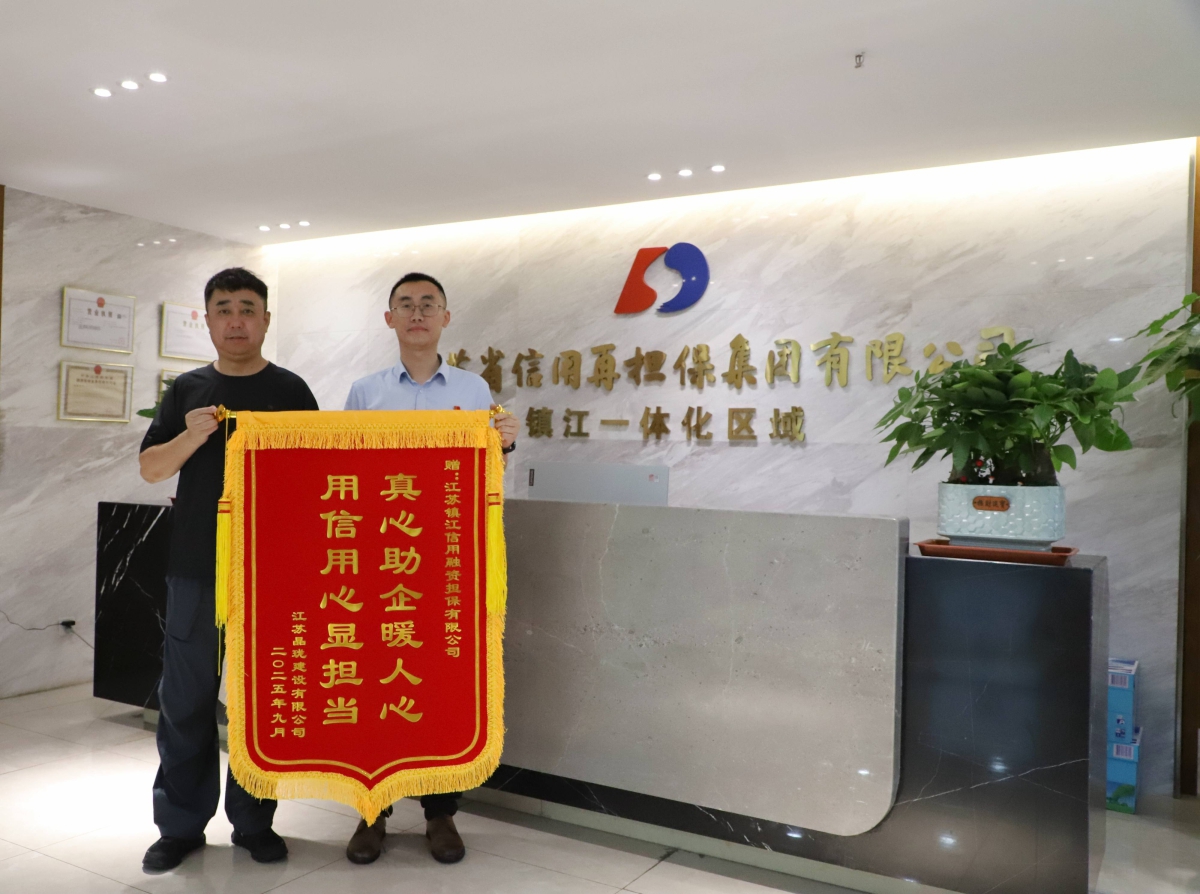 2025年9月12日,江蘇晶瓏建設負責人攜“真心助企暖人心 用信用心顯擔當”錦旗,致謝鎮江擔保公司——這背后是江蘇信保集團助企興企的生動實踐。