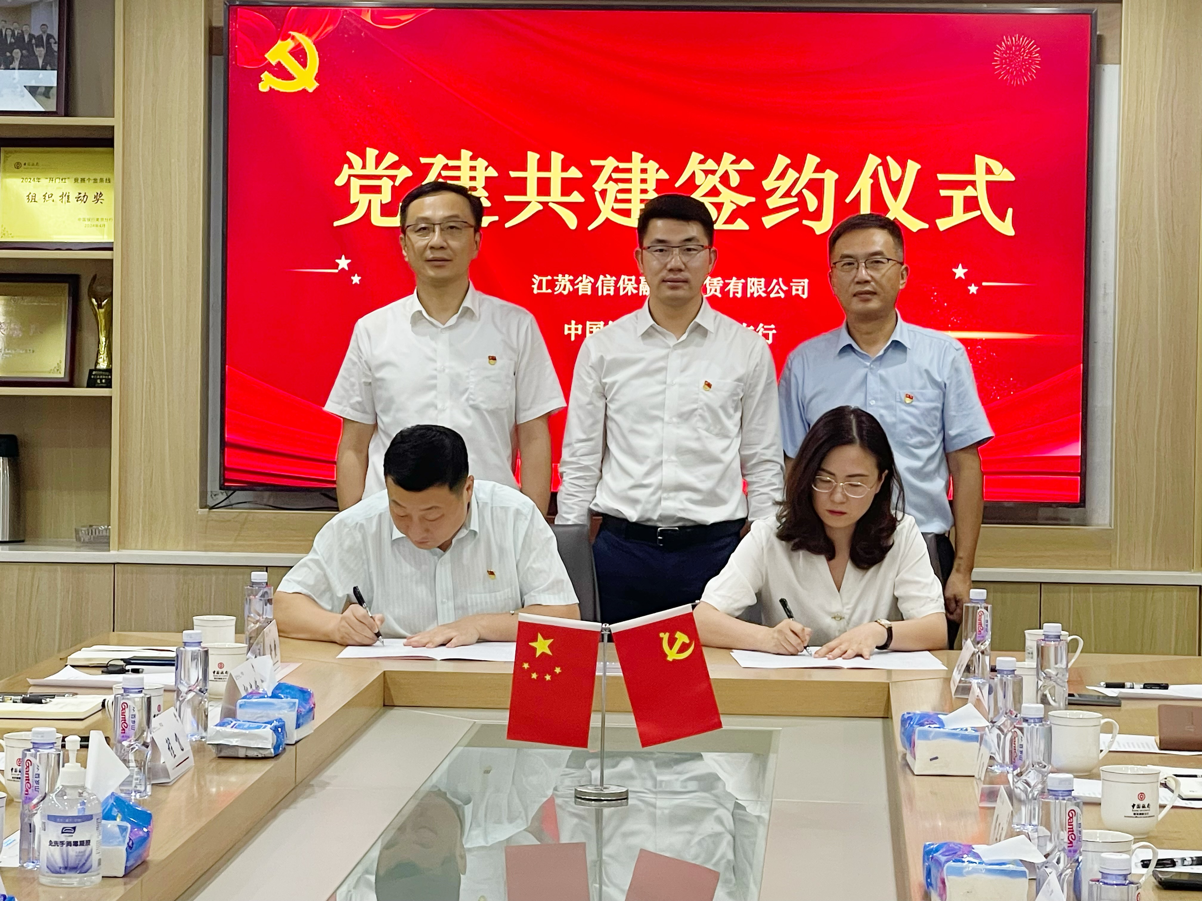 座談交流會上,信保租賃及資產聯合黨支部組織委員張璐,中國銀行鼓樓支行派駐紀檢組長馬飛分別代表雙方簽署黨建共建暨廉潔伙伴協議。