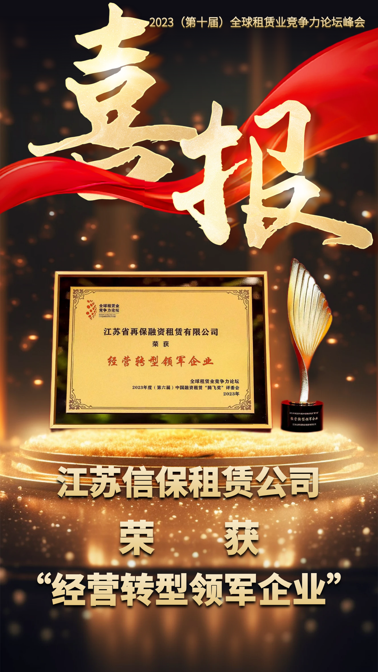 12月14日,2023 年度(第六屆)中國融資租賃“騰飛獎”公布評選結果,江蘇信保租賃公司憑借在轉型發展中的突出表現,獲評中國融資租賃“騰飛獎”經營轉型領軍企業。(信保租賃 王靜怡)